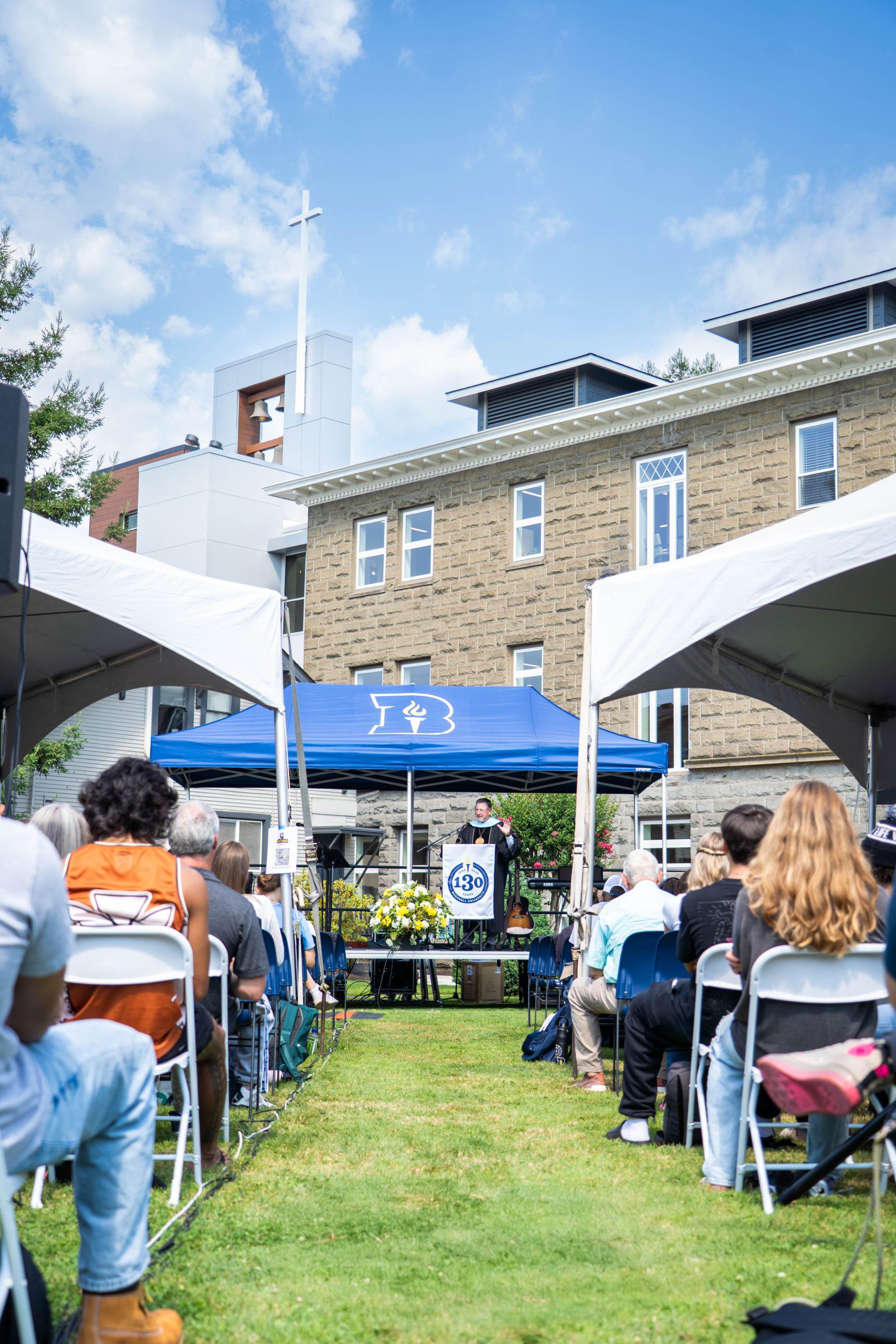 On that day, those gathered here sang the grand old hymn we just sang: “All Hail the Power of Jesus Name.” Today, and for a host of tomorrows, we shout out our praise with the ringing of these bells. We rededicate this building to the mission of Christ-centered higher education and raise His cross as a beacon to our commitment to the faithful exercise of that mission in the lives of students.