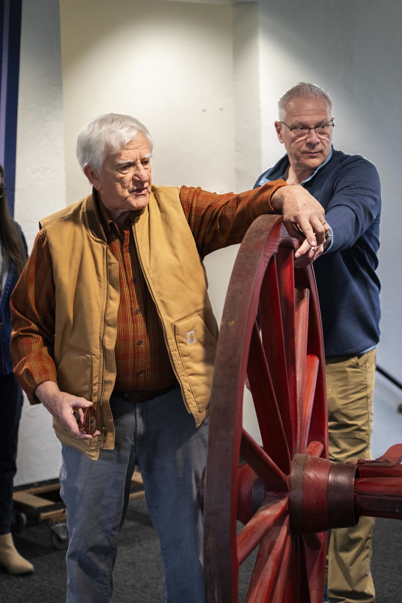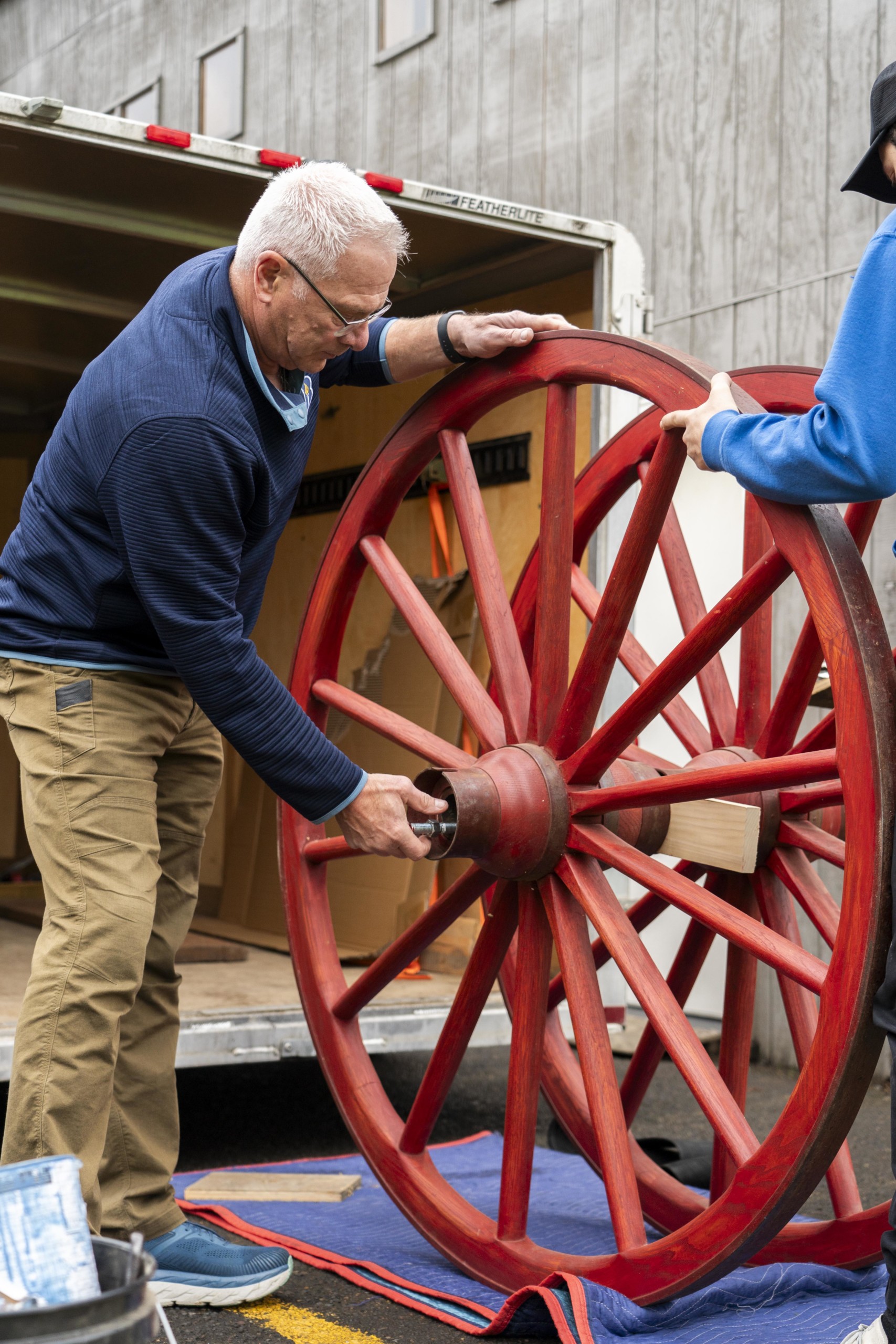 When the Board of Trustees voted to change the name of the University to honor the spirit of our namesake, James A. Bushnell, Jim offered to help tell the Bushnell family’s pioneer story in a unique and three-dimensional way. He began to restore an 1843 farm wagon which would have been the type of wagon used specifically by pioneers coming along the Oregon Trail. Prairie schooners and Conestoga wagons would have been too heavy to come over the steepest mountain passes or to be hoisted down river canyons, so simpler and lighter farm wagons were used. Jim was able to replicate the 1852 gear (axles and wheels) and then chose historically authentic stain colors to match the most common versions of these wagons.